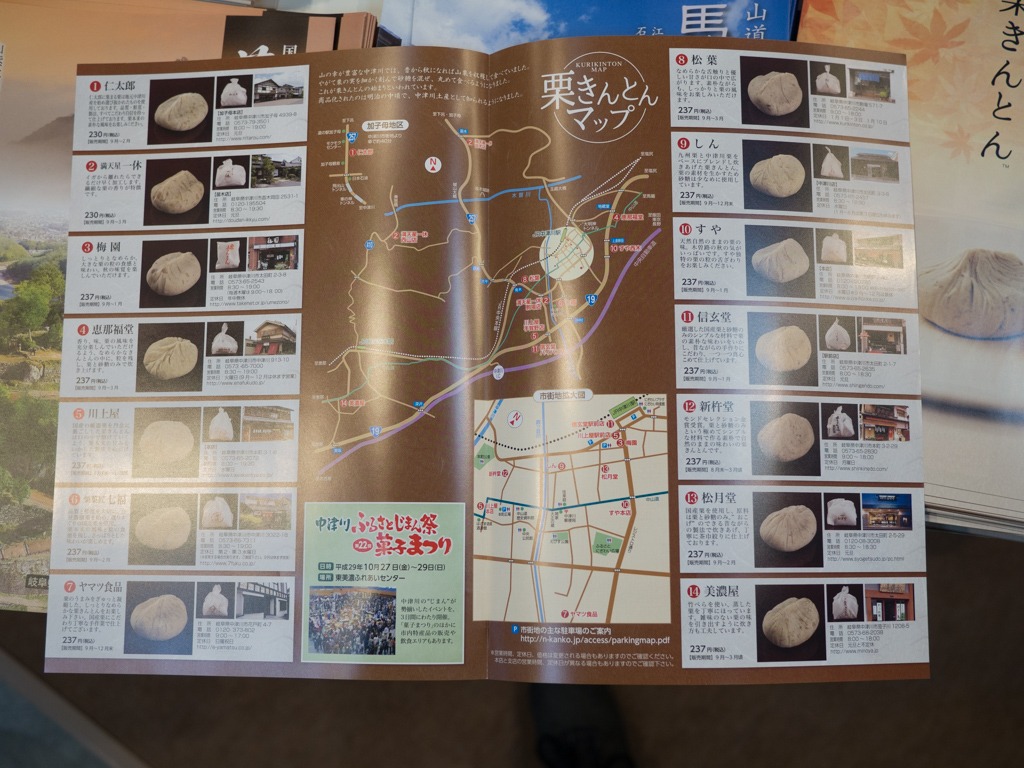 Accessoirement, le contenu n’est pas toujours très informatif comme cette merveilleuse brochure pour des omiyages au marron qui présentent 21 boutiques vendant exactement le même produit, avec des photos quasi identiques. Bref, certains n’ont pas encore lu David Atkinson…