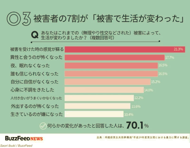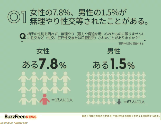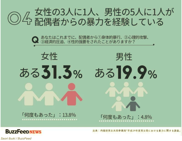 Fin mars, le Cabinet du Premier Ministre japonais (内閣) a présenté les résultats de son enquête sur les violences domestiques (version archivée), celle-ci centrée sur les violences sexuelles.
