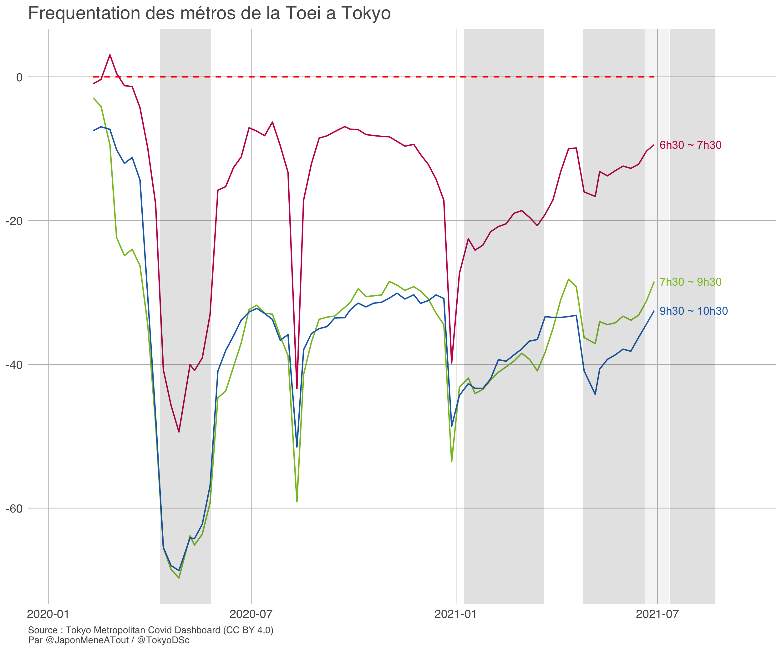 Premières infos : celles que la ville de Tokyo partage sur son site sur le COVID et qui se concentrent sur le rush matinal.